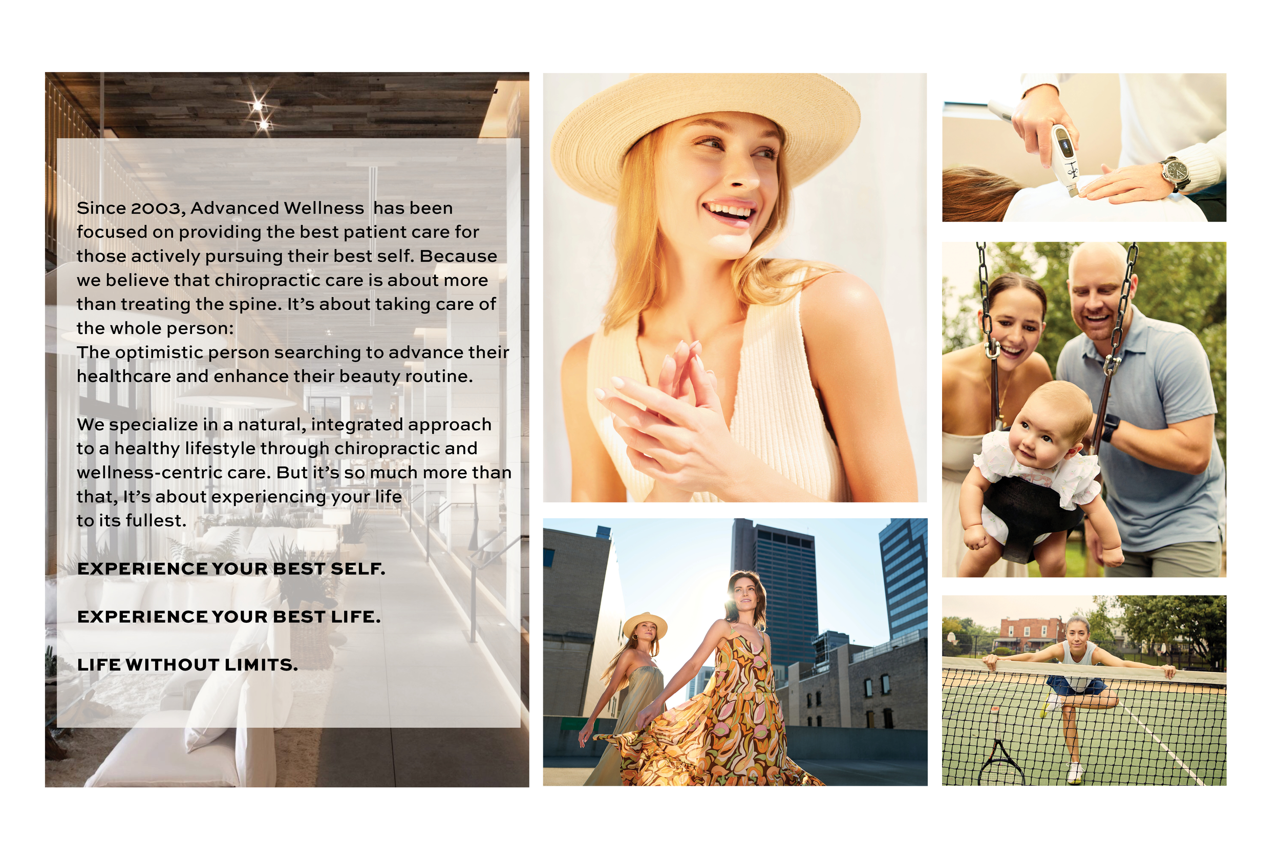 Advanced Wellness engaged us to help expand their customer base and modernize their brand projection. We developed a fresh positioning that centers on emotion and the feeling of well-being, standing apart from the promo-driven, functional approach of others in the space.